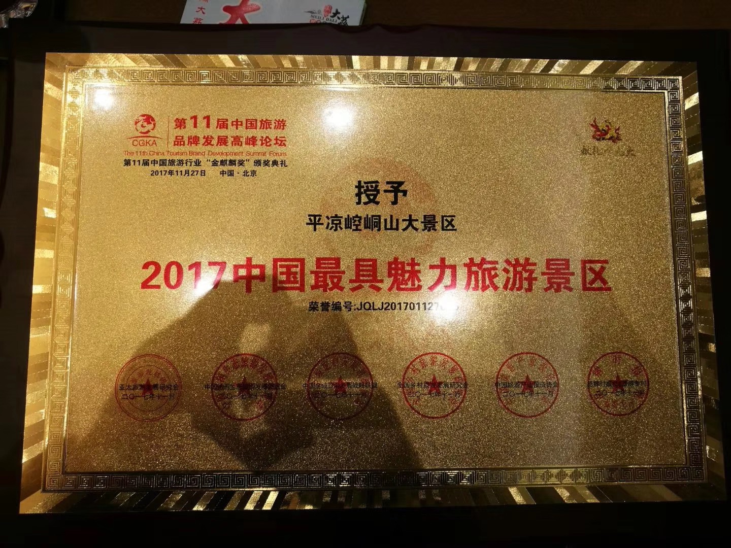 11月27日上午,“第十一届中国品牌金麒麟颁奖典礼”在北京国家会议中心举行,平凉崆峒山大景区荣获“2017中国最具魅力旅游景区”。