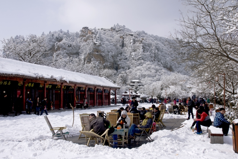 游人们泡上一杯热茶,静静的享受这冬日的清新