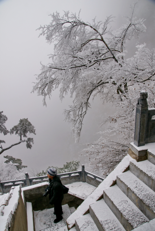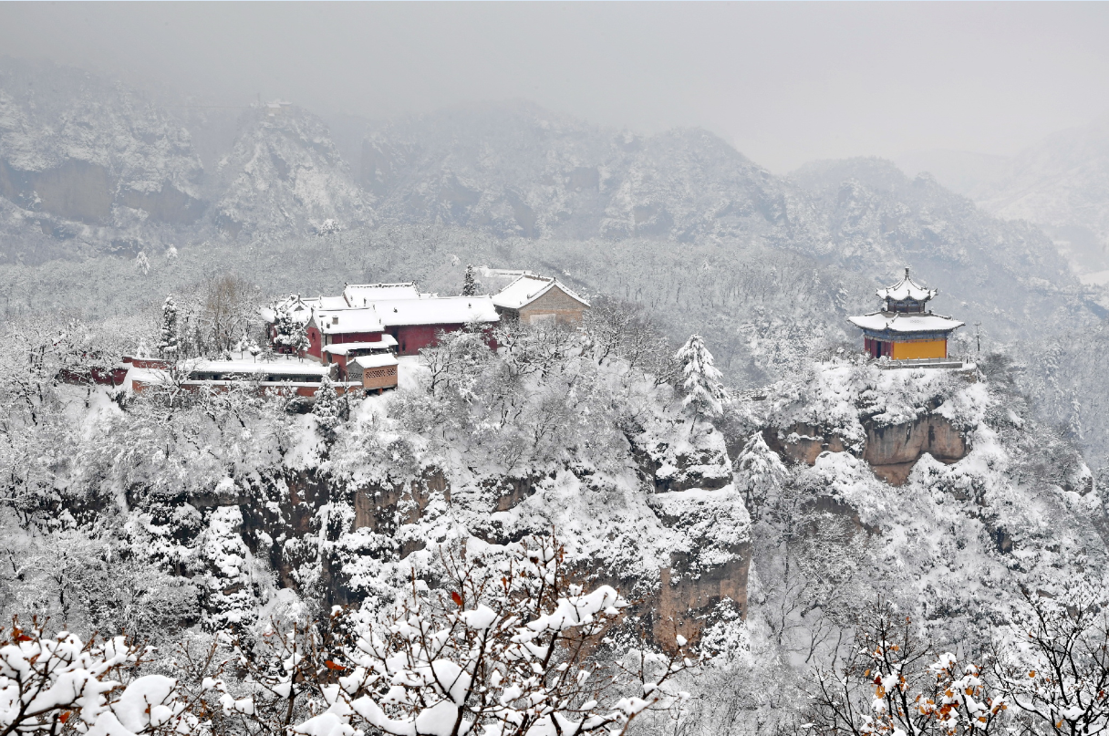 大雪纷飞,燕雀南飞。崆峒山突如其来的一场初雪过后,洁白的雪花、晶莹剔透的冰晶层层叠叠的覆盖住了崆峒山的每株草,每棵树,每座庙宇。微风徐徐吹来,银色摇曳,放佛星星落在了树上时隐时现地闪烁着,这一刻的崆峒山美成了仙境!
